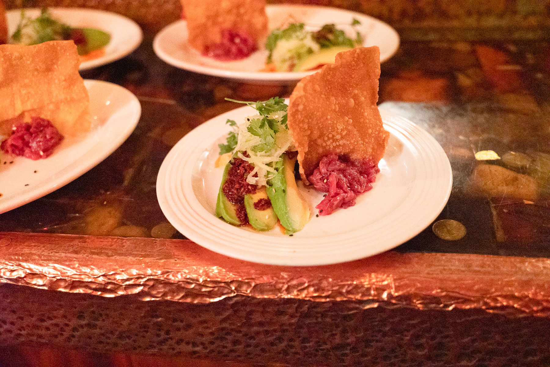 Chile crisps / sesame / avocado / green radish / fried wonton