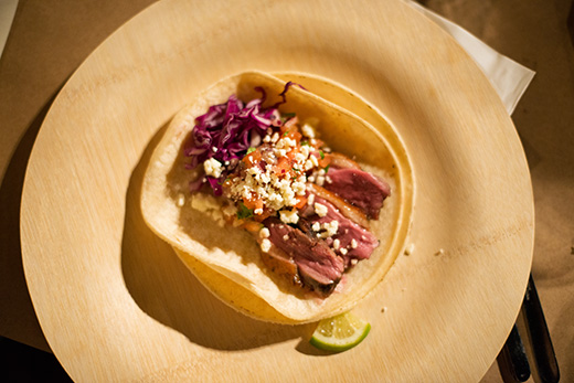 Blue corn pulled duck tacos