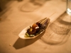 on a carrot and celery slaw with a blue cheese emulsion